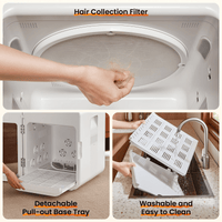 Con tecnología avanzada y un sistema de circulación de aire en 5 direcciones, esta cabina ofrece una experiencia de secado suave que reduce el estrés, elimina el polvo y los malos olores, y mantiene un ambiente higiénico ideal para perros y gatos.