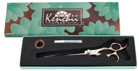 Presentamos las tijeras Kenchii Rosé, traídas especialmente para ti por FullPet Todo Peluqueria Canina. Estas tijeras están fabricadas con nuestros exclusivos materiales japoneses de molibdeno de nivel 2 y revestidas con un elegante titanio de oro rosa. Destacan por su belleza y calidad excepcionales.