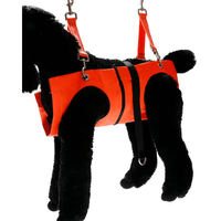 Duas correias resistentes e ajustáveis estão incluídas para personalizar a altura da suspensão. A largura é ajustável em até 10 cm (4 polegadas) fechando/abrindo a correia central para acomodar diferentes raças. Basta passar as patas do cão pelos orifícios, enrolá-las na correia e usar os ganchos em S para suspender o cão.